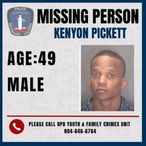 RICHMOND, VA — Authorities are seeking the public’s help in locating Kenyon Pickett, who was reported missing on September 6, 2025. The Richmond Police Department has issued a missing person alert and urges anyone with information to come forward immediately.
