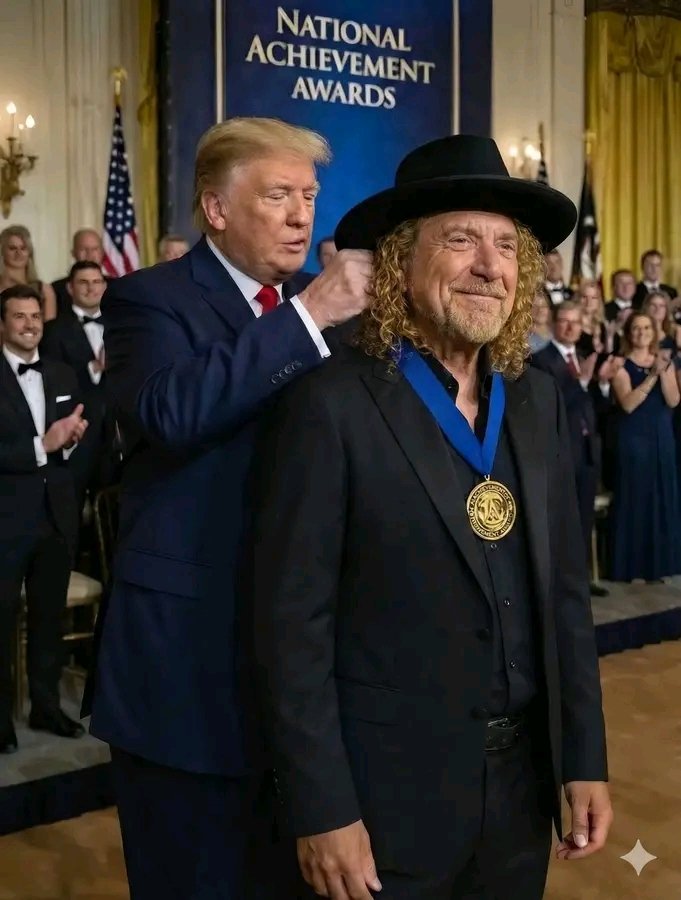 CONGRATULATIONS: Last night, President Donald Trump presented Robert Plant with the prestigious Kennedy Center Honors — and the moment quickly turned warm and unexpectedly humorous when Trump paused to admire and playfully comment on Plant’s unmistakable presence and legendary aura.
