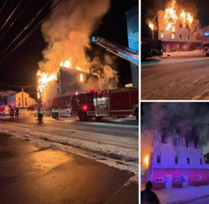 Crews rushed to the scene after reports of heavy smoke and visible flames engulfing the structure. Dramatic photos shared by the department show firefighters working aggressively to contain the inferno, battling intense heat and challenging conditions. Towering flames could be seen shooting from the building as emergency vehicles lined the area, lights flashing against a backdrop of dark smoke.