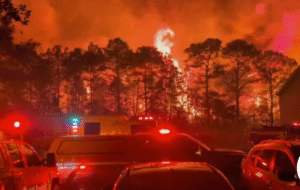 A fast-moving wildfire erupted near the Myrtle Beach area this week, forcing officials to shut down a major roadway and sending plumes of thick smoke across parts of the Grand Strand. The sudden closure has disrupted traffic, stranded motorists, and heightened concerns among residents and visitors in one of South Carolina’s busiest coastal regions.