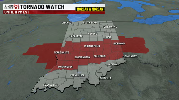 Residents across central Indiana are being urged to stay alert as a tornado watch has been extended amid intensifying storm activity across the region. Forecasters warn that atmospheric conditions remain highly favorable for severe weather development, including damaging winds, large hail, and the potential for isolated tornadoes.